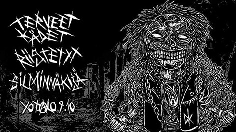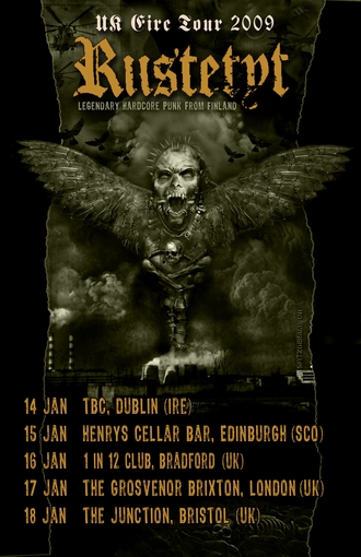 Muito obrigado!!! >>> 25.05.2012 Riistetyt is now writing new songs to upcoming 10"/12" record and playing some summergigs.>>> 03.03.2012 (sat) Klassikko-albumit goes Hard-core: Riistetyt, JMKE, Terveet Kädet & Appendix plays Helsinki @ Nosturi & Tampere @ Klubi 04.02.2012 Lazze's birthdayparty @ Vastavirta, Tampere w/ Lapinpolthajat, Anti-Klimax 10.08.2010 Balkan/Italy-tour looks fantastic! Just waiting for the last info about the gigs and it's all fixed. We will also make a weekend trip to Germany 01-03.October (Hamburg-Berlin-Leipzig). Hope to have more information about those german gigs soon... this saturday is another gig at Vastavirta again... 15.06.2010 Punk Illegal -festival in Sweden was great! Thanks a lot for everybody involved. Oslo was cool as well. Now it's time to heal the broken bones again... 03.06.2010 "Kuolonhymnejä" LP re-press is here since yesterday! It comes with a slightly different cover. 03.05.2010 USA tour was a blast! Awesome gigs, perfect organization & road crew, cool people, hospitality and partys. Special thanks goes to Matt, Shravan & S.S.R. dudes, Janick, Skell, Jim... Big thanks also to everyone who booked the shows, made food, played or just got wasted with us... you know who you are! If you have some photos / videos we would be more than happy to get some! Fuck off goes this time to NYPD and CPD. You can find some live videos / photos etc. from here: >>> 04.03.2010 CD version of "Kuolonhymnejä" album is out today! 20.12.2009 We are having a small and deserved break with gigs now. If you wanna distribute the new lp, get in touch. It's going well and the 1st pressing won't be there for long... no trades, sorry... 06.11.2009 THE NEW LP IS HERE!!!ALSO THE NEW HOMEPAGE IS HERE WITH LOT OF NEW & OLD STUFF!!! Thanks for Alejo and whole Totälickers for all help in Spain! Test pressing of the new lp is here and sounds very good. Hope we'll get the records here for the gig on 6.11. in Tampere... 24.09.2009 Small update for Spain tour dates. Mastered version of new lp is also here! 14.09.2009 Play Fast in Czech was fucking great. Because of heavy storm our plane was late and we missed the connection flight in Wien. So our gig had to be changed to saturday. Sorry for the mess and thanks for flexibility for the festival crew! Hope the festival happens next year as well. Since last update we have also visited in studio recording songs for a new lp. It's now to be mastered and hope we can make it ready for the gigs in Finland in November... but let's see... Spanish tour dates are now all there. Great to be there and play most of the gigs with friends from Totälickers! Also few gigs in Finland are fixed: Tampere, Pori and Helsinki. 01.08.2009 We played a surprise gig at Puntala-festival last weekend. 26.6.2009 Back home from Trash-fest. Thanks for the fest-crew, Koop, Jenni & Jim +other Groningen family. Extra special thanks goes to Dirk for inviting us and rescuing the symbals! We have some nice t-shirts and back patches available now. Just get them at Ilosaari or Puntala festivals! 15.06.2009 Be-Part festival was great. The way back home was close to a disaster but we made it. Thanks to organizers and cheers to all the friends who were there. This week we'll play Trashfest in Holland on friday and Haag on thursday. Amsterdam show is cancelled and moved to Pirate bar in Haag / Scheveningen - by the beach of course!!! 13.05.2009 Turku hc fest was cool. 05.05.2009 We will play at "Play fast or don't" festival in Czech Republic on September. Tons of good bands to check out: www.myspace.com/playfastordont 09.03.2009 One more gig confirmed... happy to play with our mincecore friends Agathocles from belgium again! Hope our gig will be better than our last time in Lahti... 05.03.2009 Thanks everyone who helped us on tour in Holland & Belgium! Tour was really nice but we got totally sick... We'll be back in Holland for the Trashfest and Amsterdam in June! 17.02.2009 Leaving to Holland/Belgium tomorrow... some more shows/festival gigs booked: Raw Power gig / Tampere, Turku HC fest, Be-Part fest / Stuttgart, Töminä/Ilosaarirock... 21.01.2009 UK/EIRE tour was great! Thanks a lot for everybody who helped us and had party with us, too many to list but you know who you are. We'll be back. There was some talks of some festival shows in the future... Lasses birthday party in Tampere was also great. Passed out punx on stage, broken bones, sorbus... Laki ja järjestys 7"ep is also re-pressed by Höhnie Records (Germany)