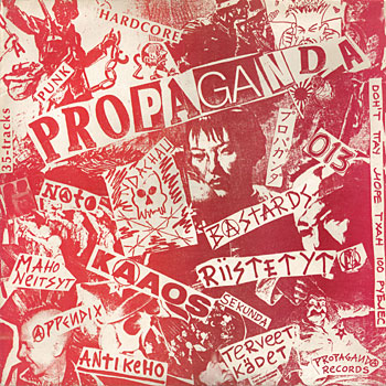 Propaganda - Russia Bombs Finland LP (Propaganda Records, PRO 005) 1982 (Höhnie Records, HÖ 110) 2008 CD (Kråklund Records, KRÅKCD 26) 1996 Riistetyt: Älä Luota Systeemiin / Painu Helvettiin Natsiäpärä / Sä Maksat / Rajoitukset / Mä en jaksa Elää Other bands: Bastards, Antikeho, Kaaos, Nato, Terveet Kädet, 013, Maho Neitsyt, Appendix, Sekunda, Dachau |